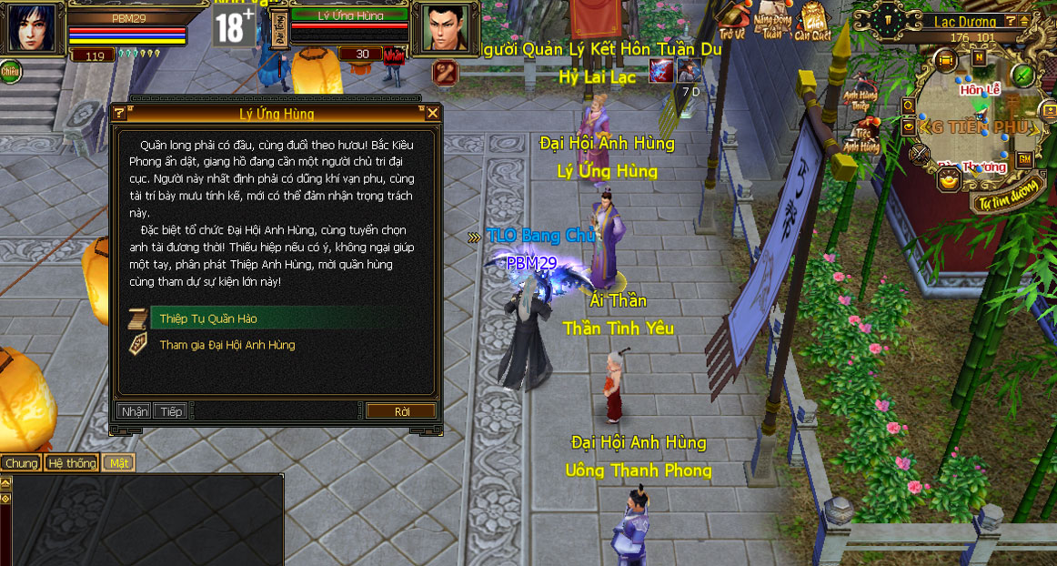 - Đại hiệp đến NPC Lý Ứng Hùng để nhận nhiệm vụ.