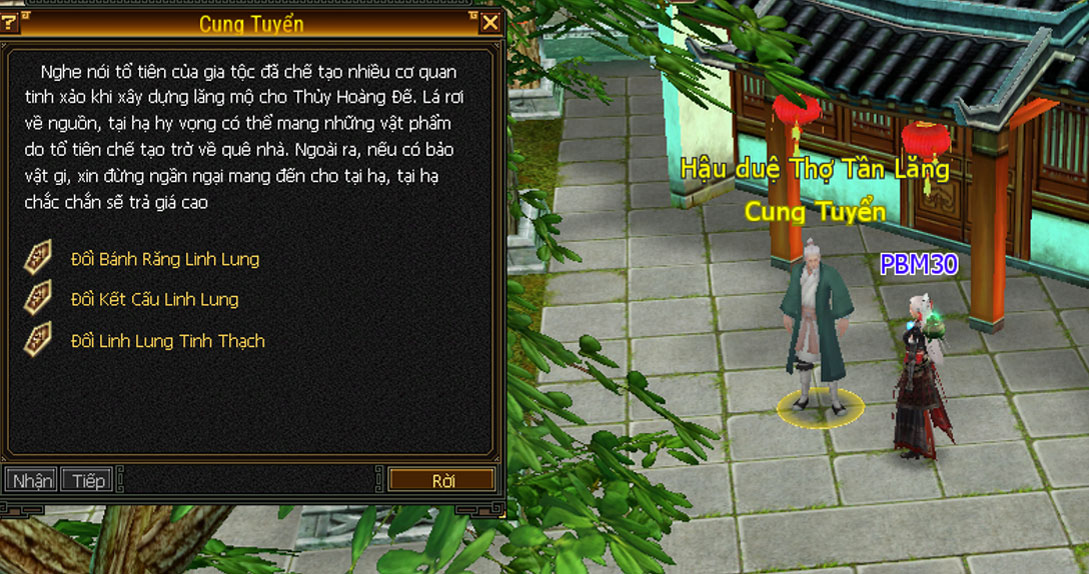- Bánh Răng Linh Lung, Kết Cấu Linh Lung có thể đem đến gặp Cung Tuyển tại Tô Châu (197,209) để tiến hành đổi các vật phẩm trân quý.