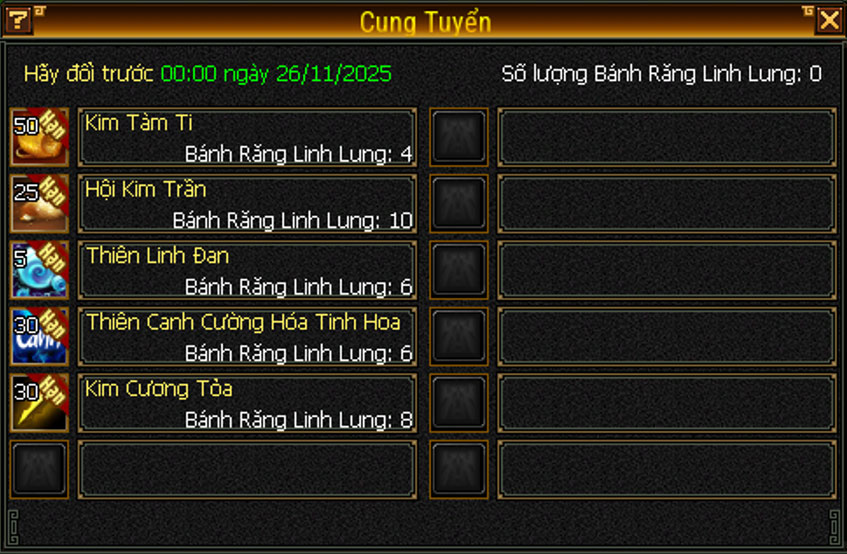 - Các vật phẩm đổi từ shop của Cung Tuyển có giới hạn lượt đổi và ở trạng thái khóa.