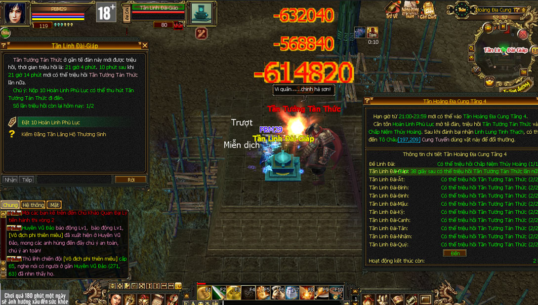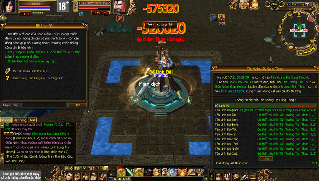 - Từ thời điểm 21:00 đến 23:59 mỗi ngày, tầng 4 của Tần Hoàng Địa Cung sẽ được mở ra thông qua cổng truyền tống tại vị trí ở Tầng 3 (133,40). Tại tầng 4, sẽ có Đại Tế Đàn và các Tiểu Tế Đàn, tại mỗi vị trí này, các đại hiệp sẽ dùng Hoán Linh Phù Lục để triệu hồi các BOSS Hoạt động.
