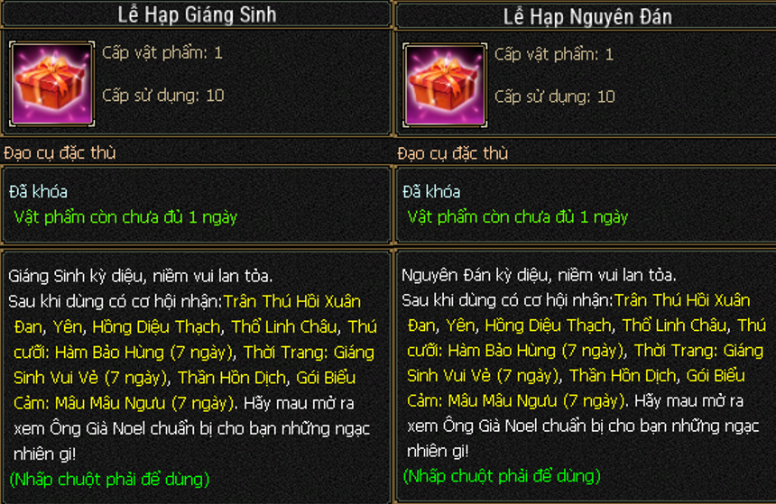 - Mở lễ hộp Giáng Sinh/Nguyên Đán sẽ nhận được ngẫu nhiên: