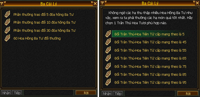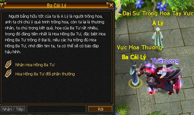 - Nhận Hoa Hồng Ba Tư: Mỗi ngày có thể nhận 1 Hoa Hồng Ba Tư từ NPC Ba Cái Lý.