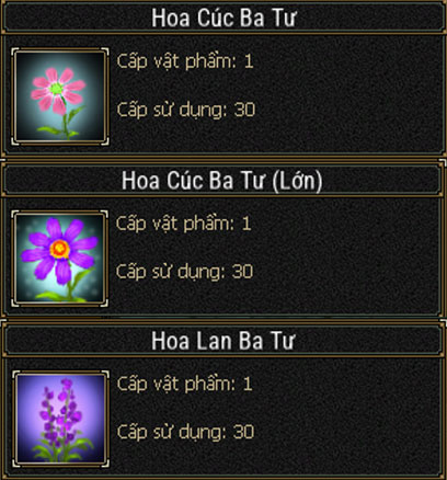 - Các loại Hoa Lan Ba Tư, Hoa Cúc Ba Tư, Hoa Cúc Ba Tư (lớn) có thể bán cho các thương nhân, chủ tiệm…để nhận về Vàng Khóa.