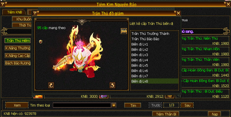 - Tiệm Nguyên Bảo thêm mới tính năng xem trước Trân Thú: Có thể xem giao diện đồ giám của Trân Thú tương ứng.