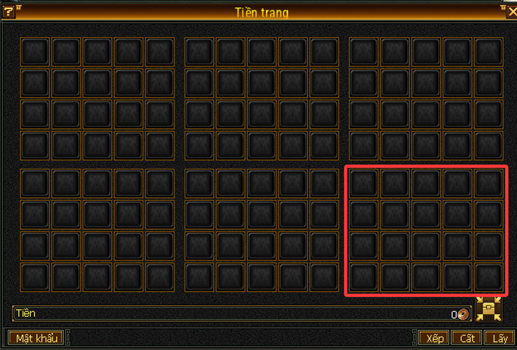 - Nhân vật có thể mở rộng và sử dụng thêm ô Ngân Khố thứ 6 để tăng khả năng lưu trữ.