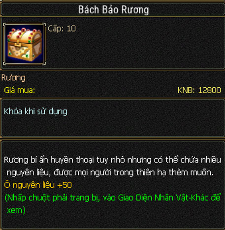 | 7 | Rương Thần Hồn | Mở nhận Thần Thú Hồn Ngọc, nhận 1 trong 5 Thần Thú | ||
