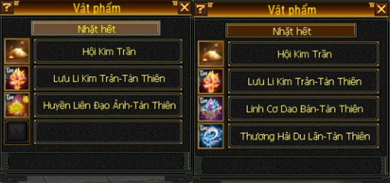 - Mỗi khi tiêu diệt boss, các đại hiệp có thể nhặt được Hội Kim Trần và các Huyễn Hồn Tàn Thiên.