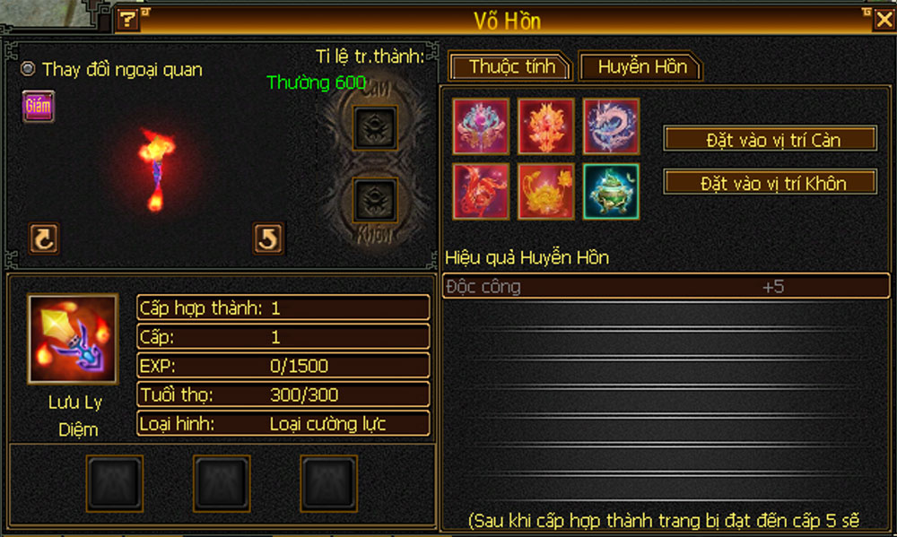 - Sau khi kích hoạt, có thể tiến hành đặt Huyễn Hồn vào vị trí Càn hoặc vị trí Khôn để nhận thêm các thuộc tính khác nhau.